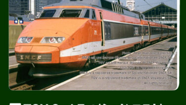 ●TGV Sud-Est(シュド・エスト)はヨーロッパ初の高速鉄道路線であるフランスのLGV南東線(パリ~リヨン)に投入されたTGVの初代車両です。開業前に在来線で運用されたのち1981年の同線開業に伴って最高速度260km/hで運行を開始しました。その2年後には路線の延伸と共に最高速度270km/hとなりました。当時の日本の新幹線の営業最高時速を上回り、世界最速の列車として注目を集めました。路線・車両ともに様々な更新を経て、最高速度は300km/hまで向上し、長きにわたって活躍を続けました。実車が引退した現在も初代のオレンジ塗色は根強い人気を誇っています。